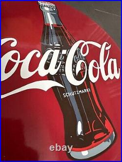 COCA COLA Schutzmarke HEAVY ENAMEL BUTTON ORIGINAL 60s 70s SIGN 40 cm Vintage. Used very nice condition – a few small bruises as seen in the photos. Rare unique original German item (not replica).